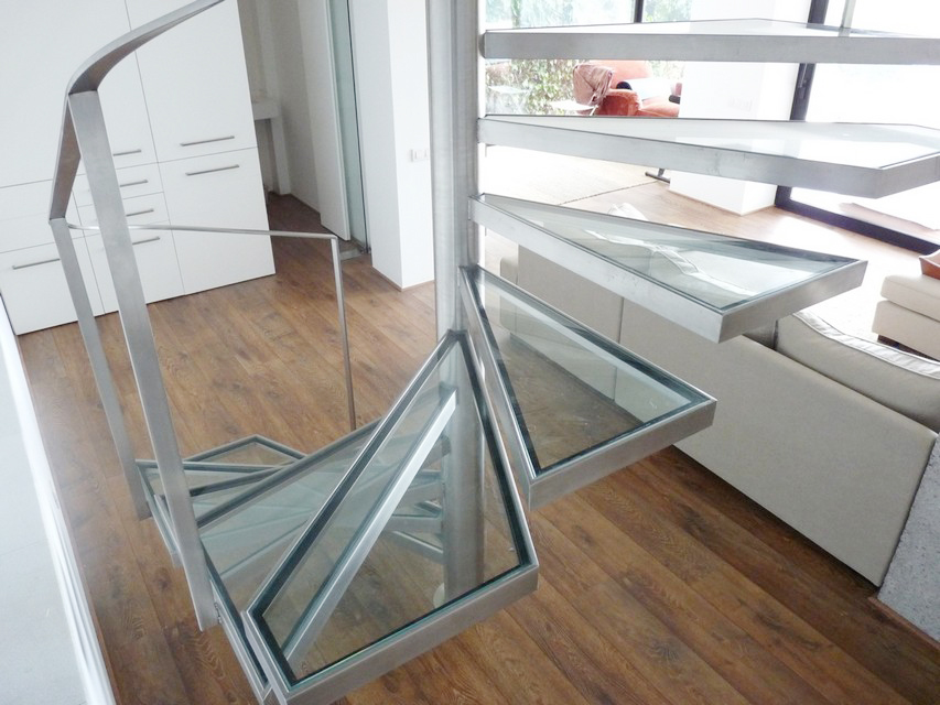 En hierro, acero inoxidable, combinadas con cristal o con, madera. Nuestros diseños son creados para formar parte del valor arquitectónico y decorativo de una estancia. Una escalera no debe ser un elemento que entorpezca sino que sume atractivo a la estancia en la que está destinada.