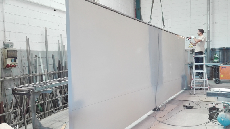 Con chapa de aluminio lacada al horno. Con chapa de hierro galvanizado lacado al horno.